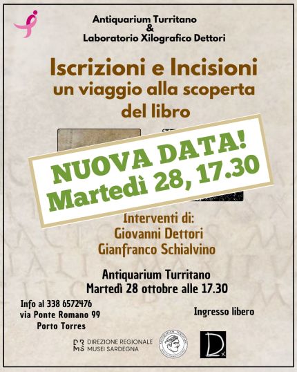 Il 28 ottobre alle ore 17:30, presso l’Antiquarium Turritano, si terrà la conferenza "Iscrizioni e Incisioni. Un viaggio alla scoperta del libro".