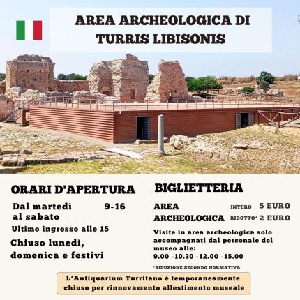 L'area archeologica è visitabile solo accompagnati dal personale del museo alle 9.00, 10.30, 12.00, 15.00